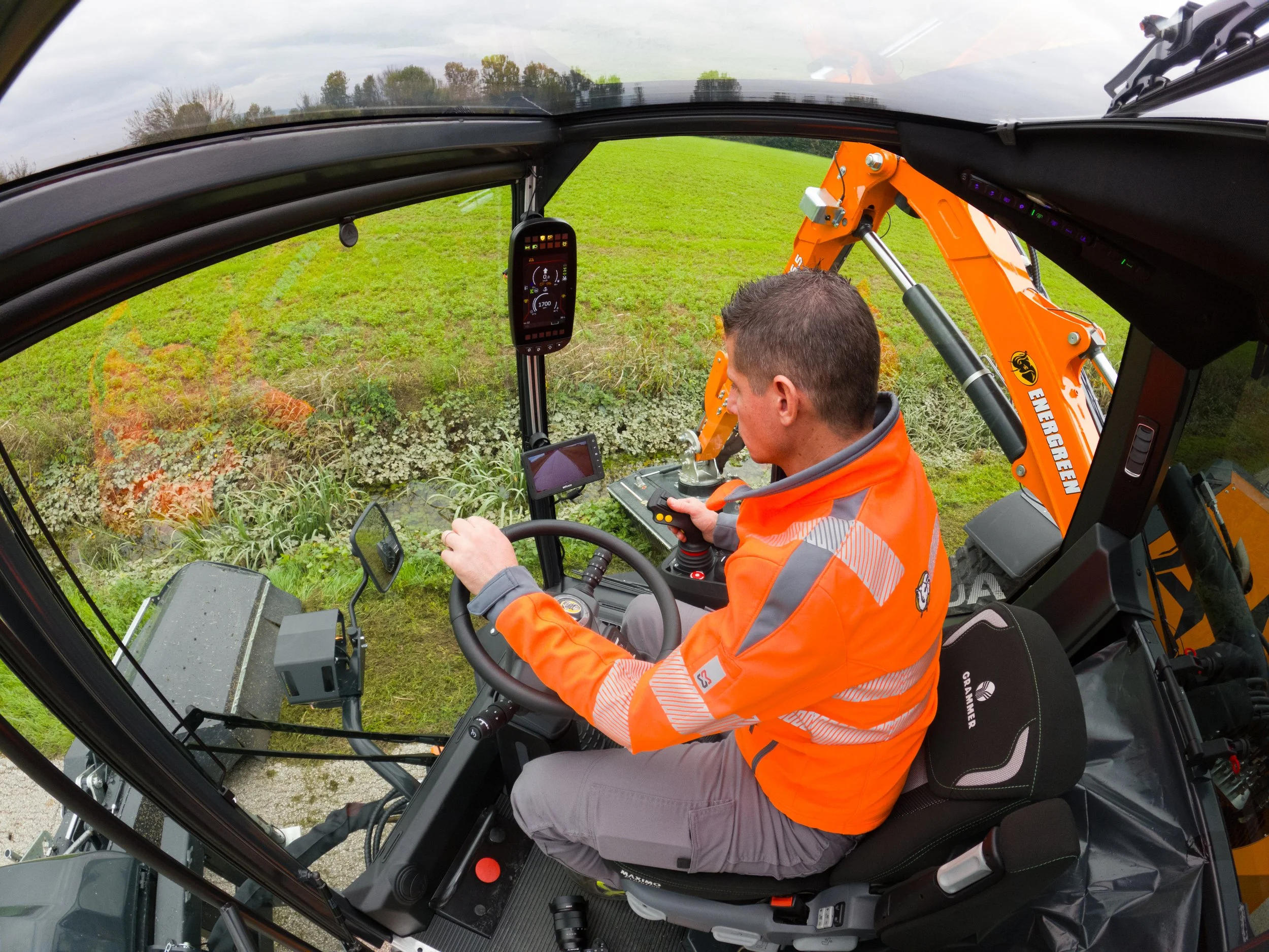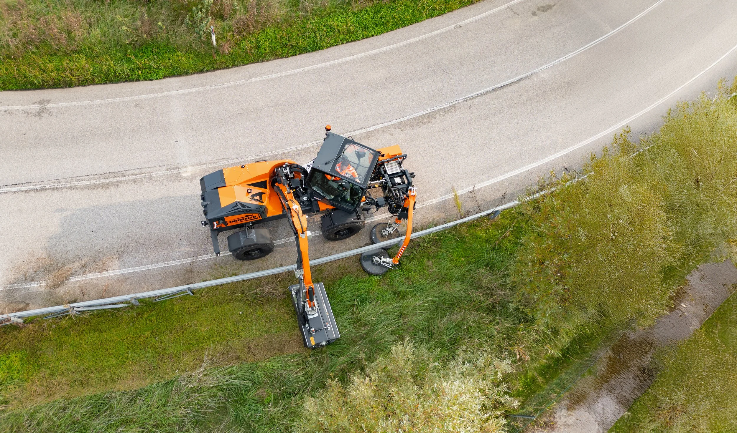 Je popolna izbira za košnjo trave ob cestah in avtocestah, saj združuje okretnost, vsestranskost in visoko produktivnost. Nova panoramska, vrtljiva in vzmetena kabina omogoča izjemno vidljivost, kar zagotavlja varno in učinkovito delo. Kabina ima možnost zasuka do 45 stopinj.
