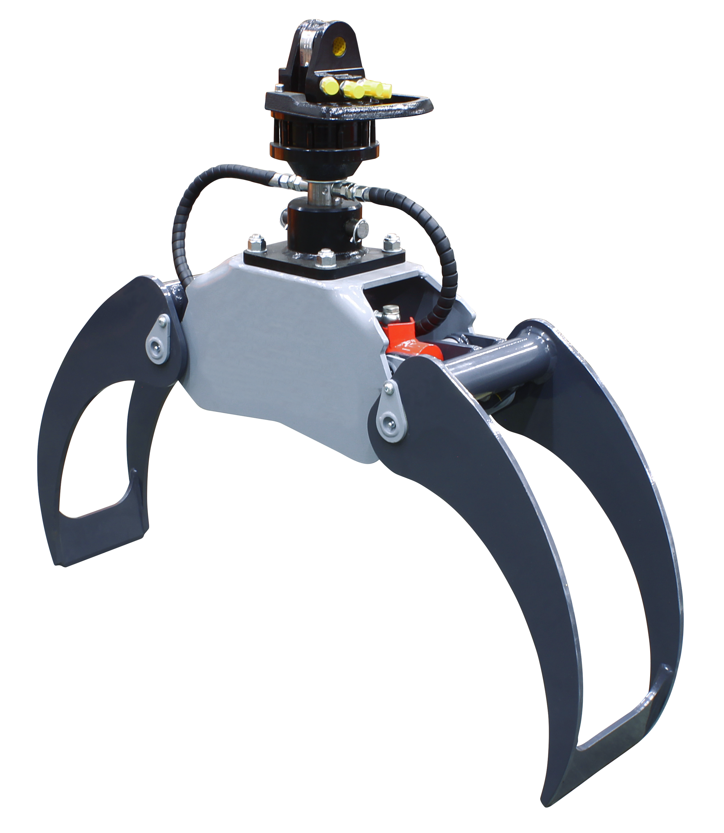 Trunk Pincers so zmogljive in vsestranske klešče za prenašanje debel pri sečnji, z nosilnostjo 850 kg, 360° rotacijo in visoko zapiralno silo, primerne za vse teleskopske roke strojev ILF Energreen.