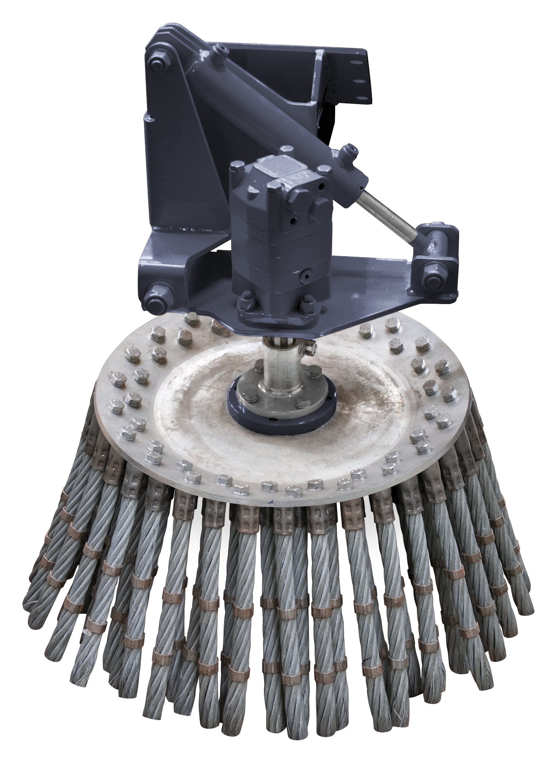 Iron Brush je zmogljiva krtača za mehansko odstranjevanje prerasle trave in plevela iz betonskih ali asfaltnih površin, delovne širine 70cm. Opremljena je s hidravličnim cilindrom za nastavitev naklona ter pritrdilno ploščo za teleskopsko roko. Teža: 125kg.